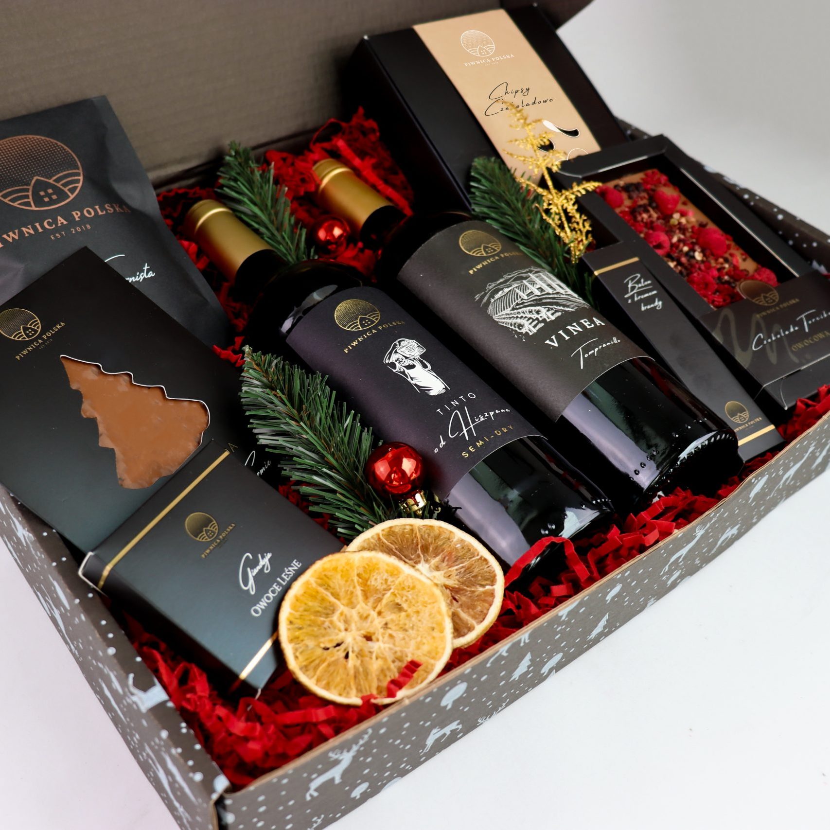 Zestaw upominkowy Duet na Gwiazdkę to elegancka kompozycja dla osób ceniących dobre wino i świąteczne smaki. Dwa starannie dobrane hiszpańskie wina stanowią wyjątkowe tło dla słodkich dodatków i aromatycznej kawy, które razem tworzą nastrojowy i wyrafinowany upominek. Doskonale sprawdzi się zarówno jako prezent firmowy, jak i indywidualny – gotowy do wręczenia, efektowny i uniwersalny.