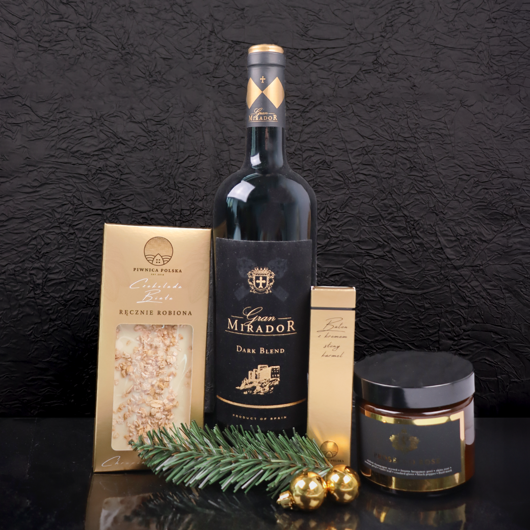 Zestaw upominkowy Świąteczna równowaga to harmonijne połączenie smaków, aromatów i elegancji – doskonała propozycja na Boże Narodzenie 2025. Centralnym punktem zestawu jest czerwone wino Gran Mirador Dark Blend, o głębokim, zbalansowanym smaku, które doskonale komponuje się z nastrojową atmosferą zimowych wieczorów.