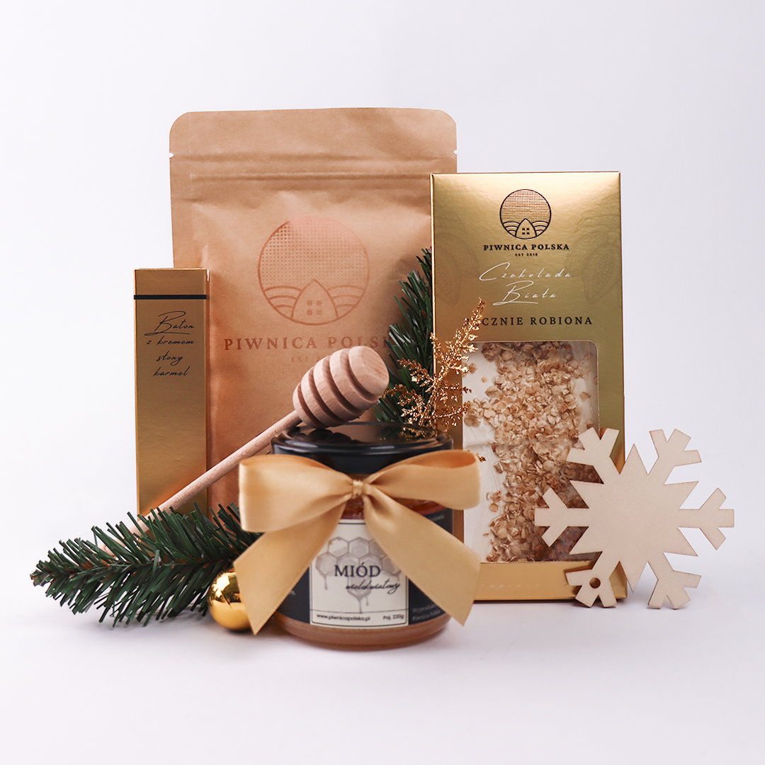 Zestaw Upominkowy Świąteczna Słodycz to klasyczna, elegancka propozycja prezentowa na Boże Narodzenie 2025. Łączy w sobie najwyższej jakości polskie produkty spożywcze – idealne na zimowe dni i świąteczne poranki. To doskonały wybór zarówno dla firm, które chcą obdarować swoich pracowników i partnerów biznesowych, jak i dla klientów indywidualnych szukających prezentu z charakterem.
