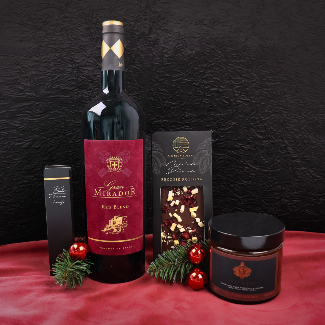 Zestaw upominkowy Świąteczny Aromat to elegancka propozycja na Boże Narodzenie 2025, stworzona z myślą o zmysłowym relaksie i wyjątkowych chwilach w świątecznym klimacie. W centrum znajduje się wino Gran Mirador Red Blend – czerwone, hiszpańskie, o głębokim, owocowym charakterze, idealne na zimowe wieczory.