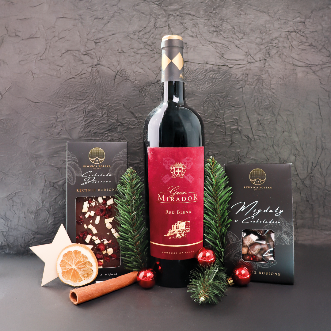 Zestaw upominkowy Wieczór przy kominku to nastrojowa propozycja na Boże Narodzenie 2025, stworzona z myślą o chwilach relaksu i ciepłej atmosferze zimowych wieczorów. Centralnym elementem zestawu jest wino Gran Mirador Red Blend – hiszpańskie, czerwone, o głębokim aromacie i delikatnej strukturze, idealne do spokojnej degustacji w blasku choinki.