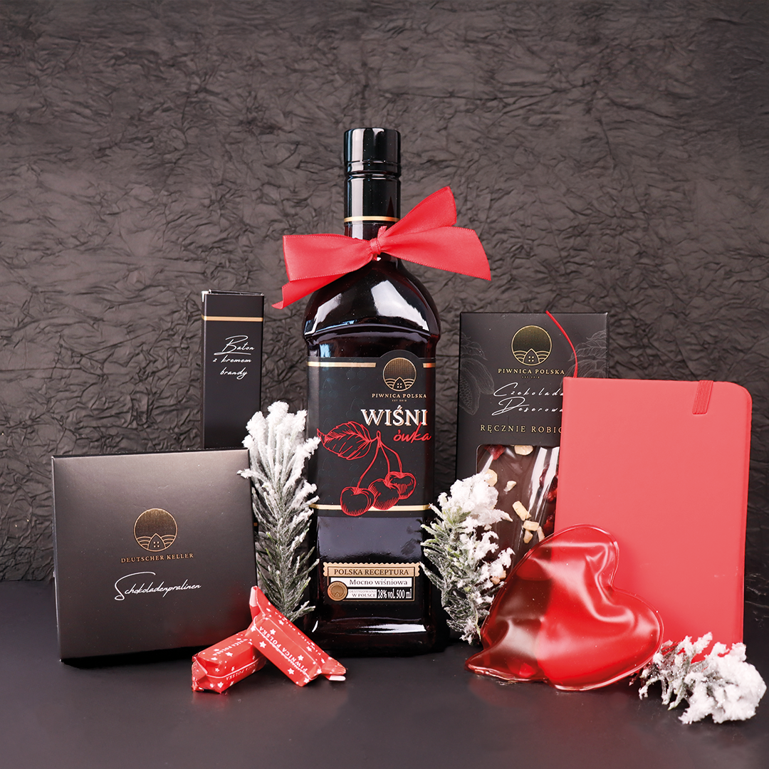 Zestaw Wiśnia pod Choinką świetnie sprawdzi się jako upominek świąteczny, który nie tylko cieszy oko i podniebienie, ale także buduje pozytywne skojarzenia z marką. Doskonały wybór dla firm, które stawiają na prezenty z charakterem i jakością.