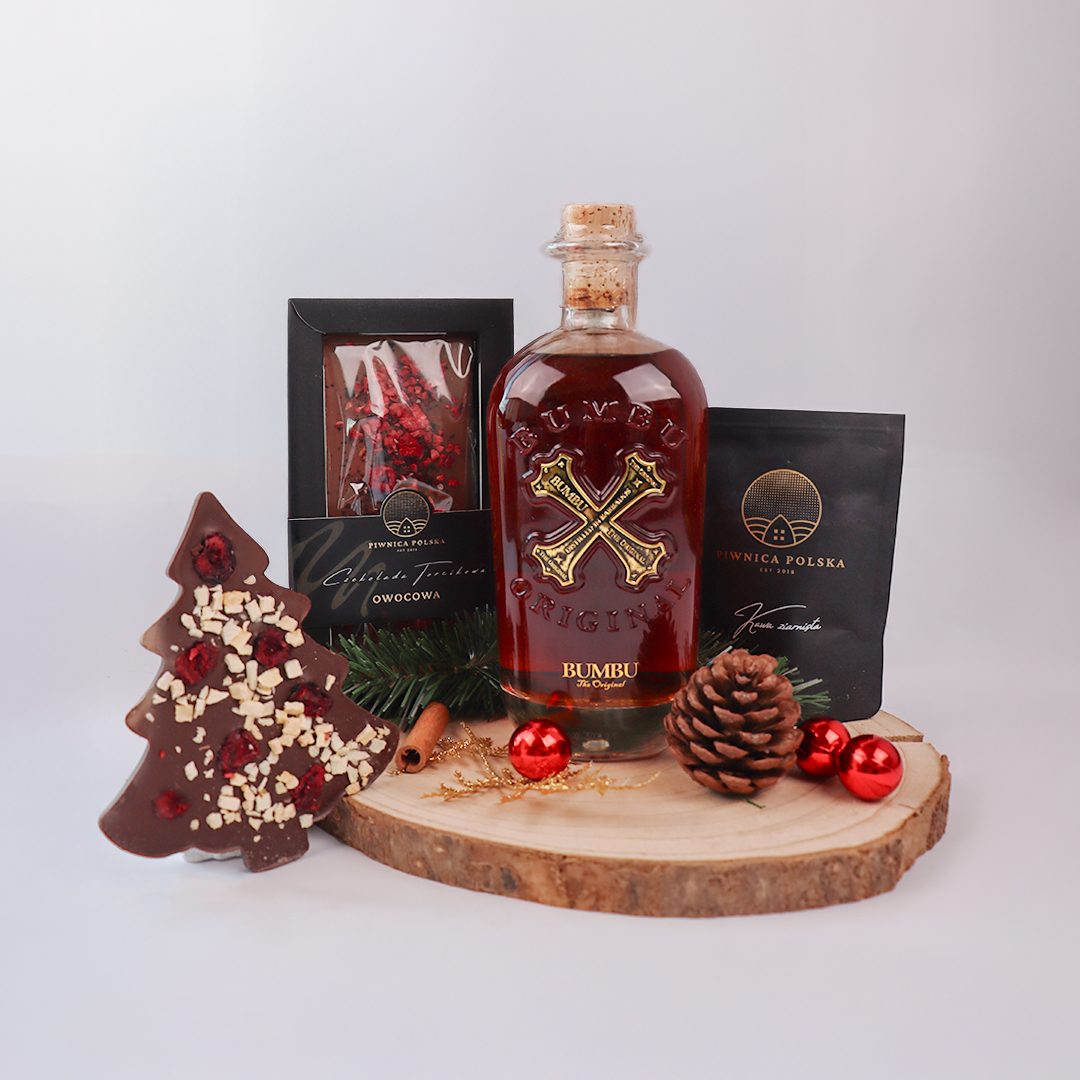 Zestaw upominkowy Zimowe Karaiby to egzotyczna propozycja na Boże Narodzenie 2025, łącząca aromaty rumu, słodycz czekolady i głębię kawowego smaku. W centrum uwagi znajduje się rum Bumbu Original – trunek o karaibskim rodowodzie, wyjątkowo aromatyczny, bogaty w nuty wanilii, karmelu i przypraw korzennych. Towarzyszą mu starannie dobrane słodycze oraz kawa ziarnista, tworząc niebanalną, a zarazem elegancką kompozycję.