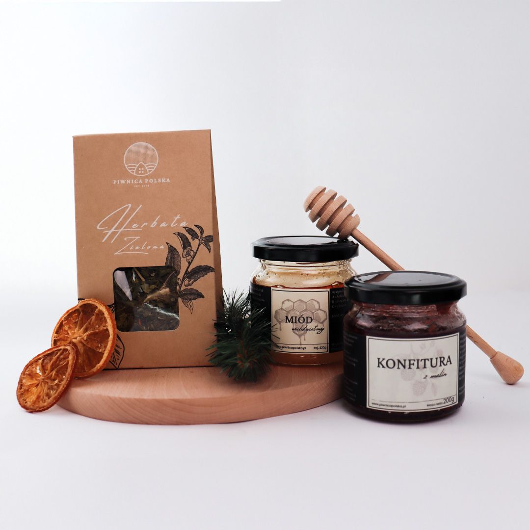 Zestaw został przygotowany w oparciu o produkty najwyższej jakości, pochodzące od sprawdzonych, polskich producentów. Znajdujące się w nim przetwory i herbata doskonale komponują się ze sobą, tworząc zgraną całość, która sprawi przyjemność każdemu obdarowanemu.